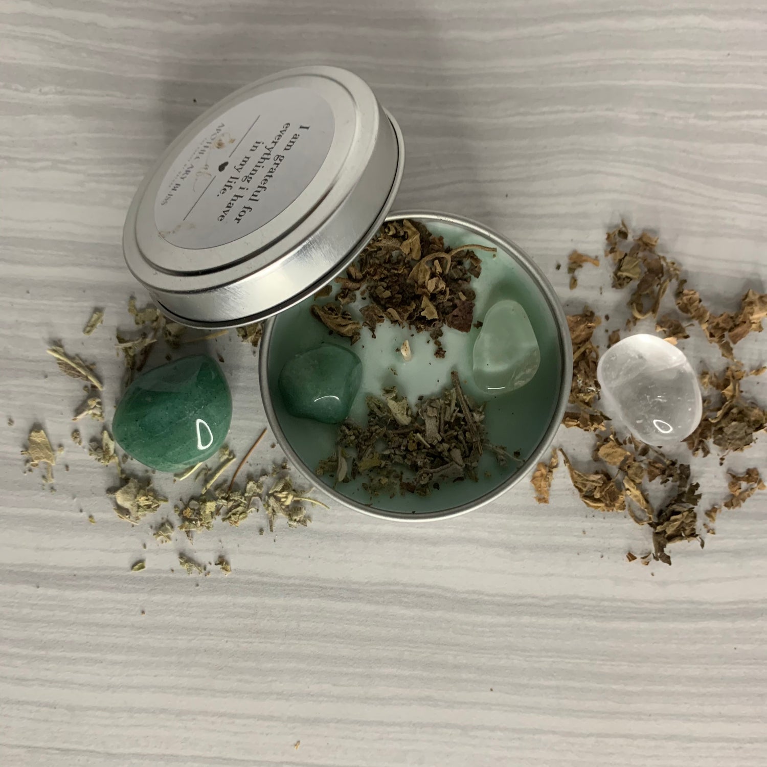 A beautiful Clear Quartz and Green Aventurine handmade candle poured with the intention of bringing in praise, appreciation and gratitude. This candle includes 1 Clear Quartz Crystal and 1 Green Aventurine Crystal, along with Patchouli and Sage Herbs.