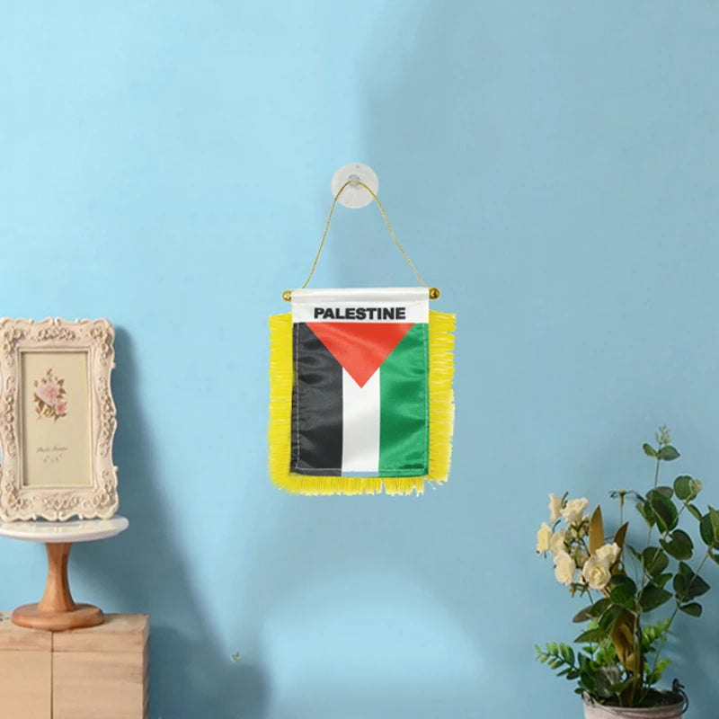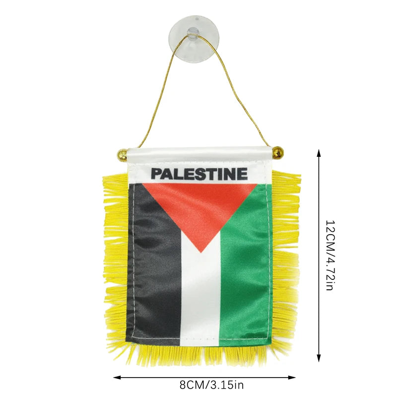 Enhance your expression of solidarity with our Palestine Hanging Small Flag – a symbol of pride and unity designed for your car window or any flat surface. Measuring approximately 4.72 inches by 3.15 inches, this compact flag is a powerful statement of support.