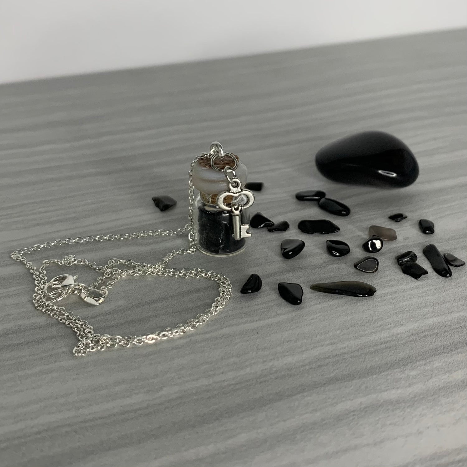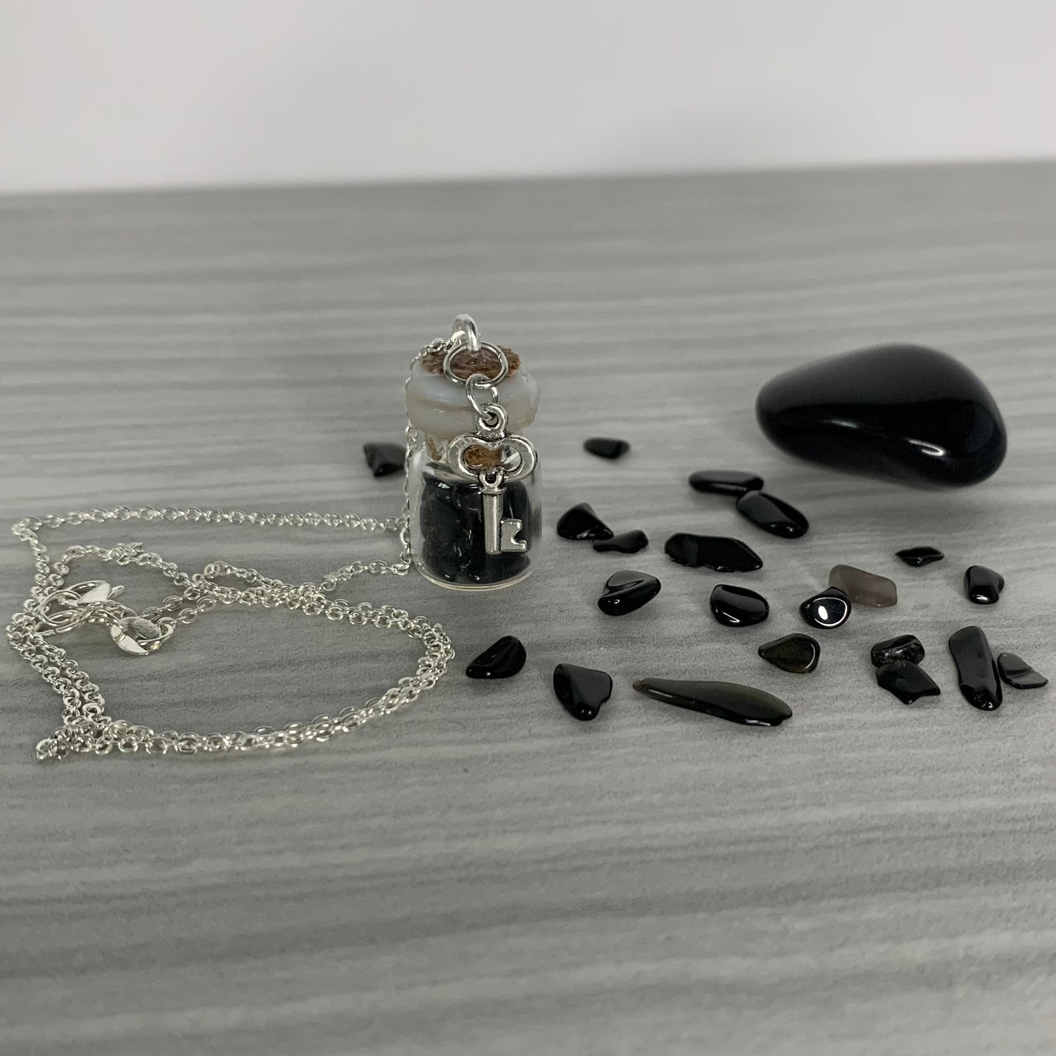 Wearing a piece of jewelry made with Black Obsidian enables you to keep a constant flow of this crystal’s energy in your energy field. When you wear a Obsidian necklace the stone helps block psychic attack and absorbs negative energies to support your intention of protection and clarity at all times.