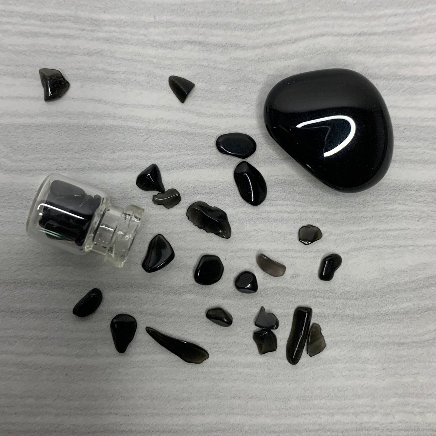 Black Obsidian is truth-enhancing. A strongly protective stone, it forms a shield against negativity. It draws out mental stress and tension and stimulates growth on all levels, urging exploration of the unknown and opening new horizons. It brings clarity to the mind and clears confusion. Helps you to know who you truly are. Obsidian dissolves emotional blockages and ancient traumas. Promotes qualities of compassion and strength.
