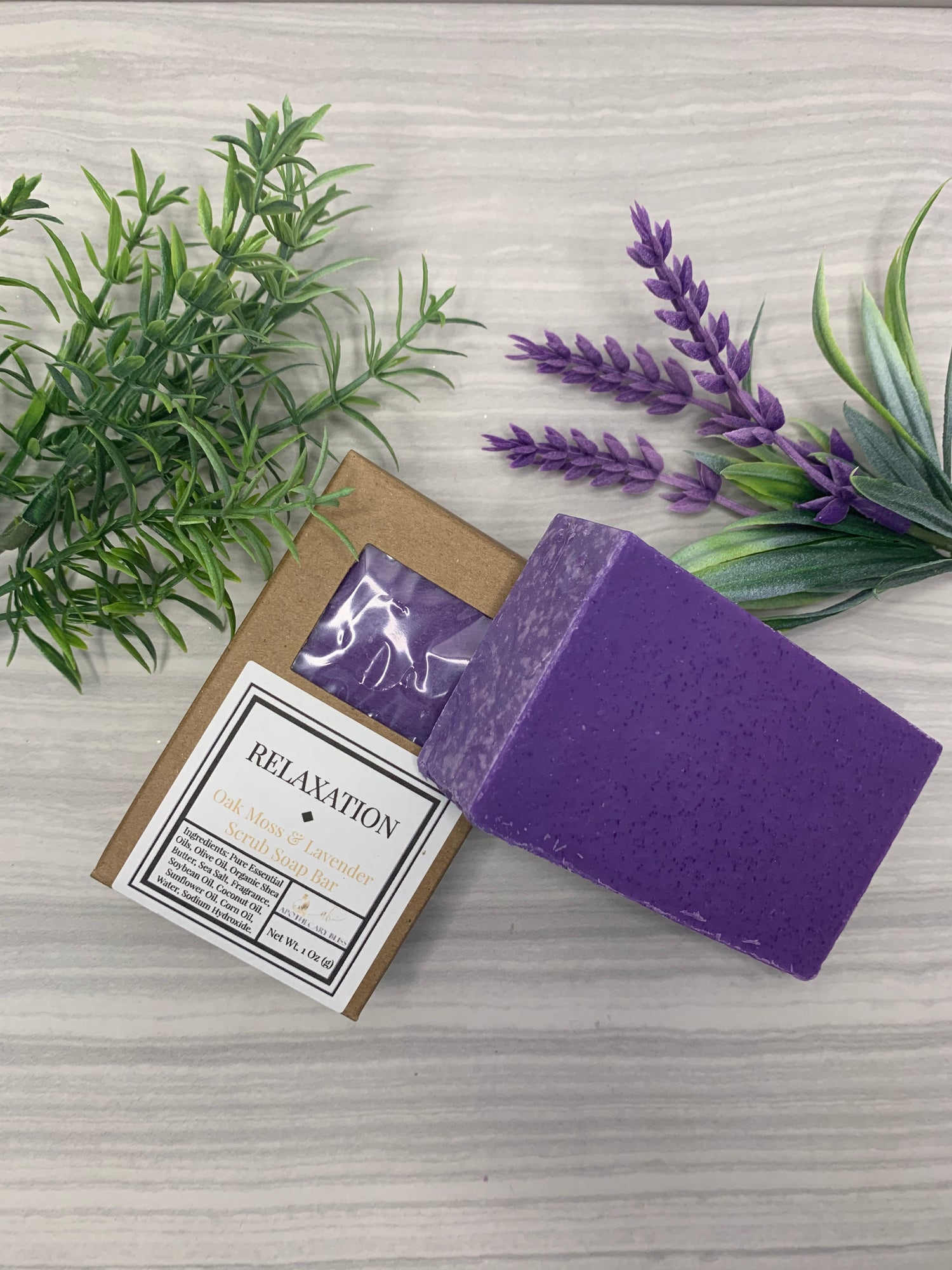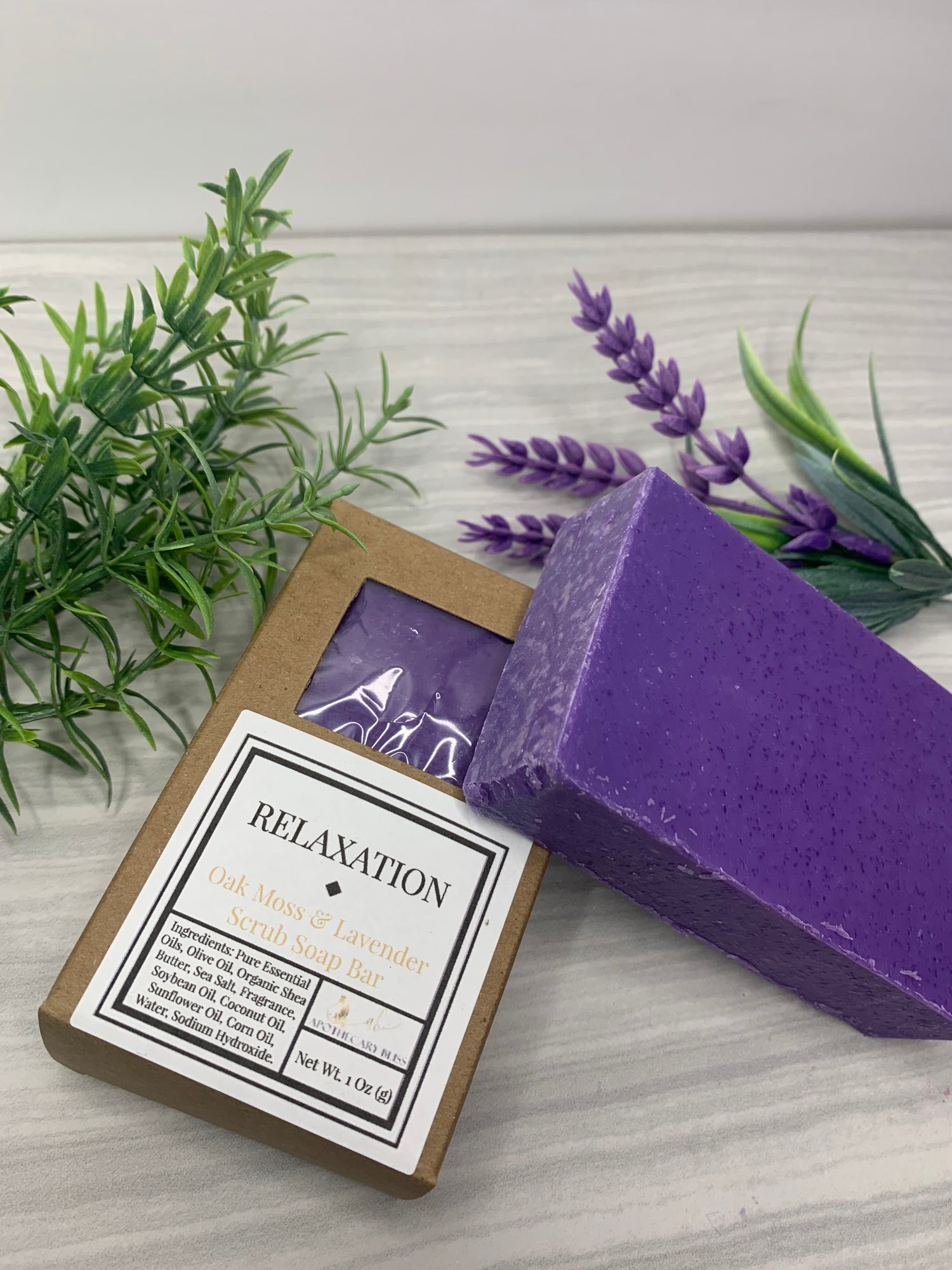 Our Oak Moss Lavender soap scrub bars are hand crafted and made with premium ingredients and with the intention of providing serenity and clarity to those who receive it. The scent is a mild oak moss and lavender aroma. It contains sea salt as an exfoliant to keep your skin moisturized and soft. (1 oz. Soap Bars)