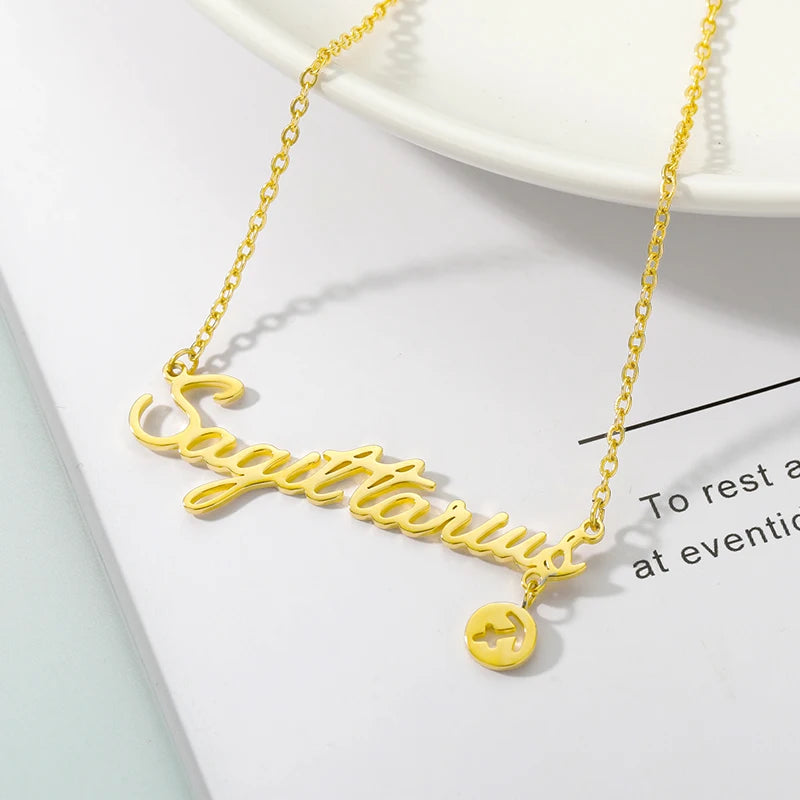 Choose your individual zodiac sign and wear it proudly with our Zodiac Necklaces. Each pendant is thoughtfully designed with the name of the zodiac sign, creating a personalized touch. Additionally, a charming attachment representing the unique characteristics of your zodiac is included.